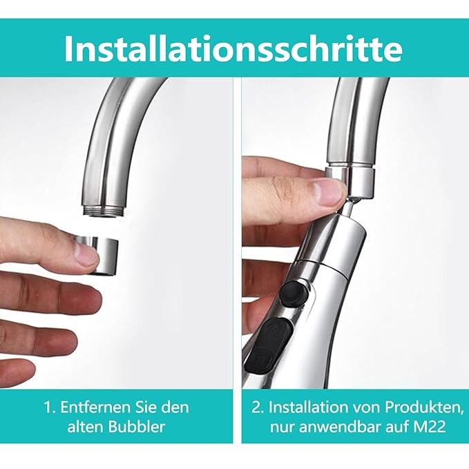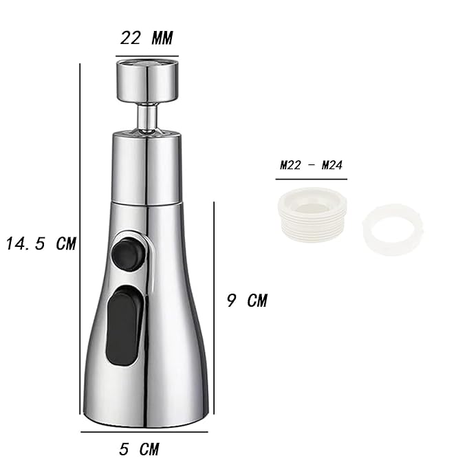 - Wide Compatibility: Suitable for faucets with 22mm external or 24mm internal threads. Comes with an extra universal interface for various faucet sizes.